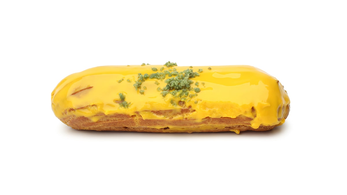 Umple eclerele cu crema de mango si apoi acopera cu cealalta parte din ecler (capacul).